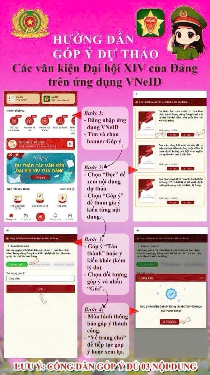 1. Mở ứng dụng và đăng nhập ứng dụng VNeID, tìm và chọn banner Góp ý
