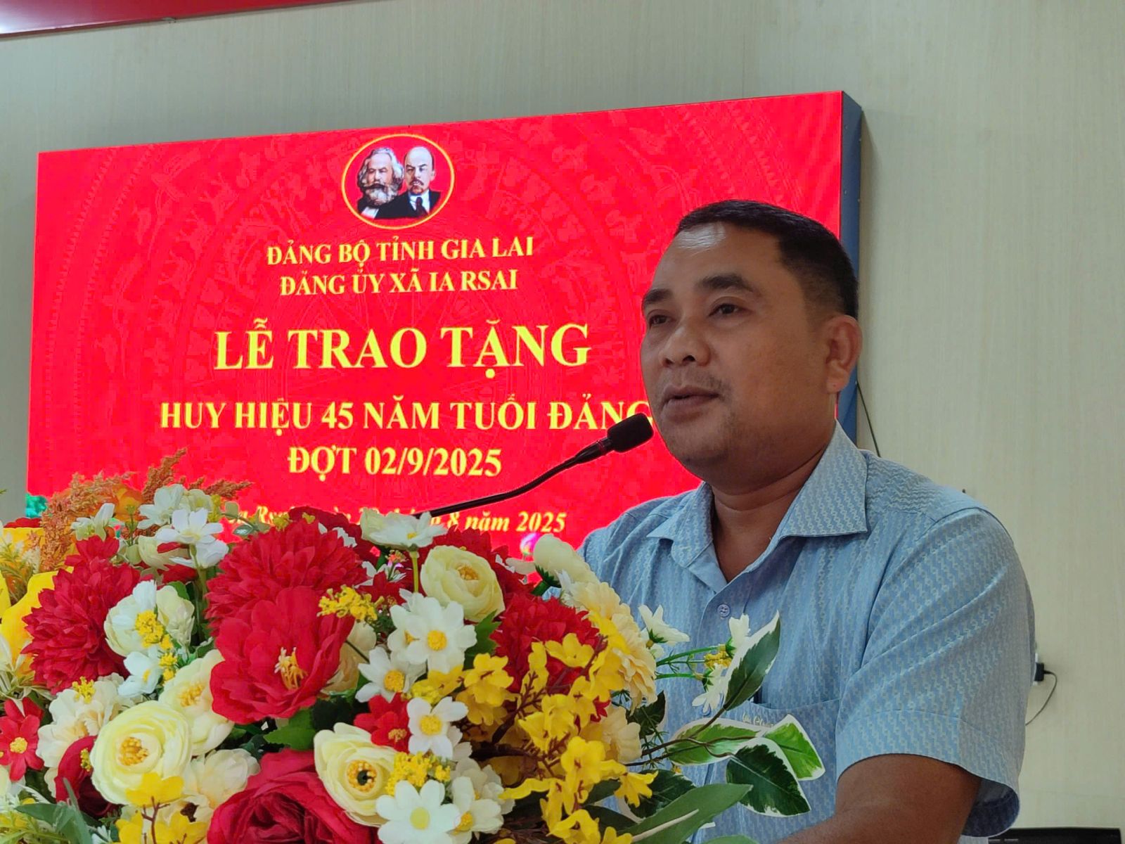 Phát biểu tại buổi Lễ, đồng chí Phó Bí thư Thường trực Đảng ủy nhấn mạnh đây là phần thưởng cao quý của Đảng, ghi nhận sự cống hiến, rèn luyện trưởng thành và trung thành tuyệt đối của các đồng chí đảng viên nói chung và đồng chí Ksor Greh nói riêng đối với sự nghiệp cách mạng của Đảng. Đồng thời, mong muốn đồng chí Ksor Greh cùng các đồng chí đảng viên cao tuổi tiếp tục giữ vững phẩm chất người cộng sản, gương mẫu trong đời sống hằng ngày, tích cực tham gia xây dựng chi bộ, đảng bộ trong sạch, vững mạnh, tiếp tục đóng góp trí tuệ, kinh nghiệm, tích cực tham gia xây dựng quê hương ngày càng giàu đẹp, văn minh, là tấm gương sáng cho thế hệ trẻ học tập và noi theo.