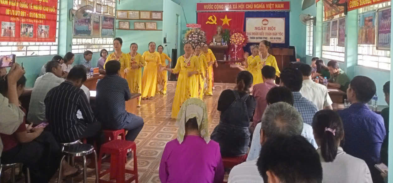 Văn nghệ chào mừng ngày hội do hội viên hội Phụ nữ thôn thể hhiện