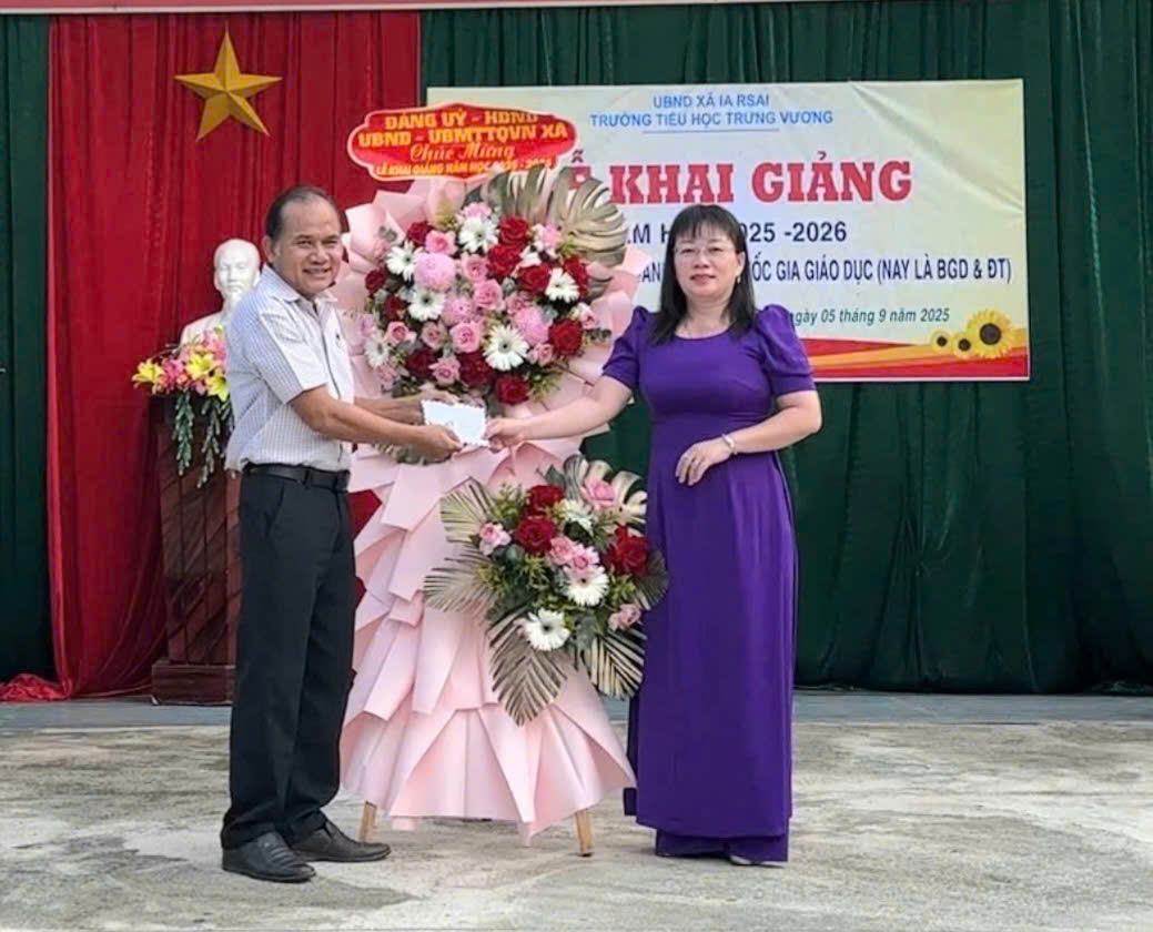 Đến dự lễ khai giảng tại trường Tiểu học Trưng Vương có đồng chí Nguyễn Thị Kiều Diễm – Bí thư Đảng ủy, Chủ tịch HĐND xã; tại trường THCS Nguyễn Trãi có đồng chí Ksor Nhật – Phó Bí thư thường trực Đảng ủy; tại trường THCS Lý Tự Trọng có đồng chí Võ Ngọc Châu – PBT, CT UBND xã;