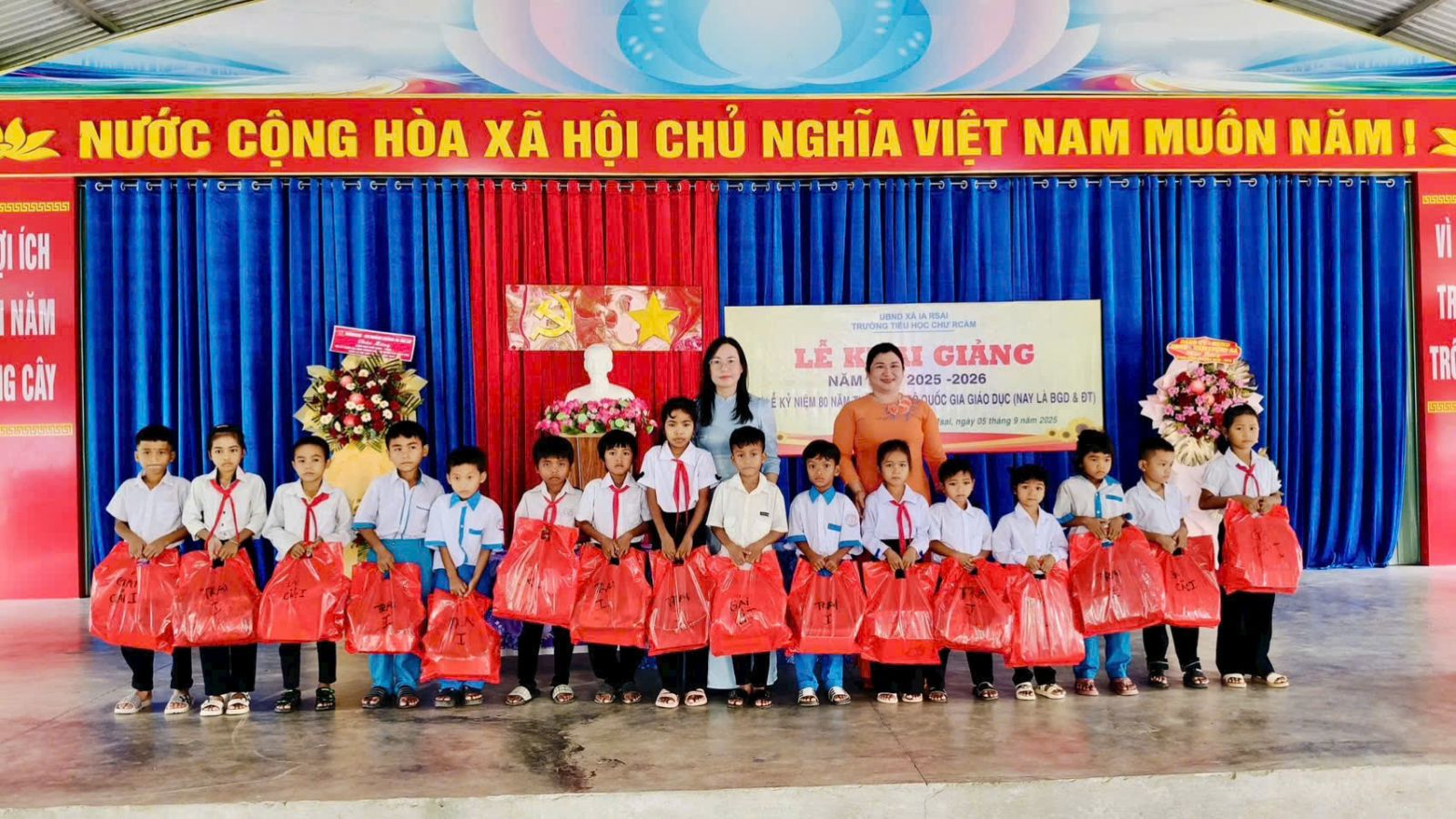 Nhân dịp này, tại trường tiểu học Trưng Vương, Ngân hàng NN&PTNN Krông Pa trao tặng 10 triệu đồng; Công an xã trao tặng 5 triệu và 10 cái mũ BH; Công ty mía đường AyunPa 2 chiếc xe đạp và 30 phần quà (1 phần 5 quyển vở); nhà hàng Đại Thành 10 phần quà ( 1 phần 5 quyển vở); tại Trường tiểu học Chư Rcăm: Hội phụ huynh học sinh 10 xuất quà trị giá 2.000.000 đồng; Hợp tác xã dịch vụ và vận tải Krông Pa 20 cái cặp, 200 cuốn vở; Công ty Đông Dương 10 xuất quà trị giá 1.000.000 đồng; Nhà hàng Đại Thành 50 cuốn vở; tại trường PTDTBT THCS quỹ bạn hữu trẻ em tỉnh tặng 18 phần(1 ba lô, 20 vở, 1 hộp bút) ; nhà hàng đại thành 11 phần(5 vở); công an tặng 5 mũ bảo hiểm cho các em học sinh có hoàn cảnh đặc biệt khó khăn.