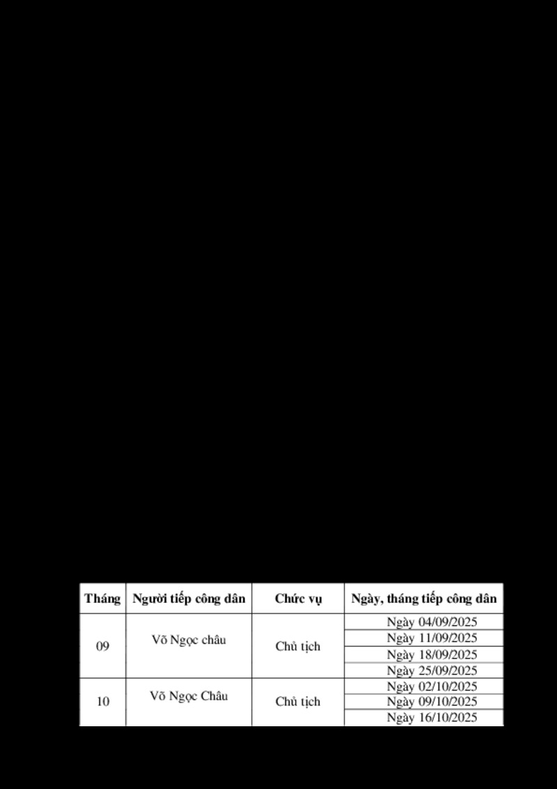 Tiêu đề văn bản | Thông báo lịch tiếp công dân định kỳ năm 2025 của Chủ tịch Ủy ban nhân dân xã Ia Rsai | ||