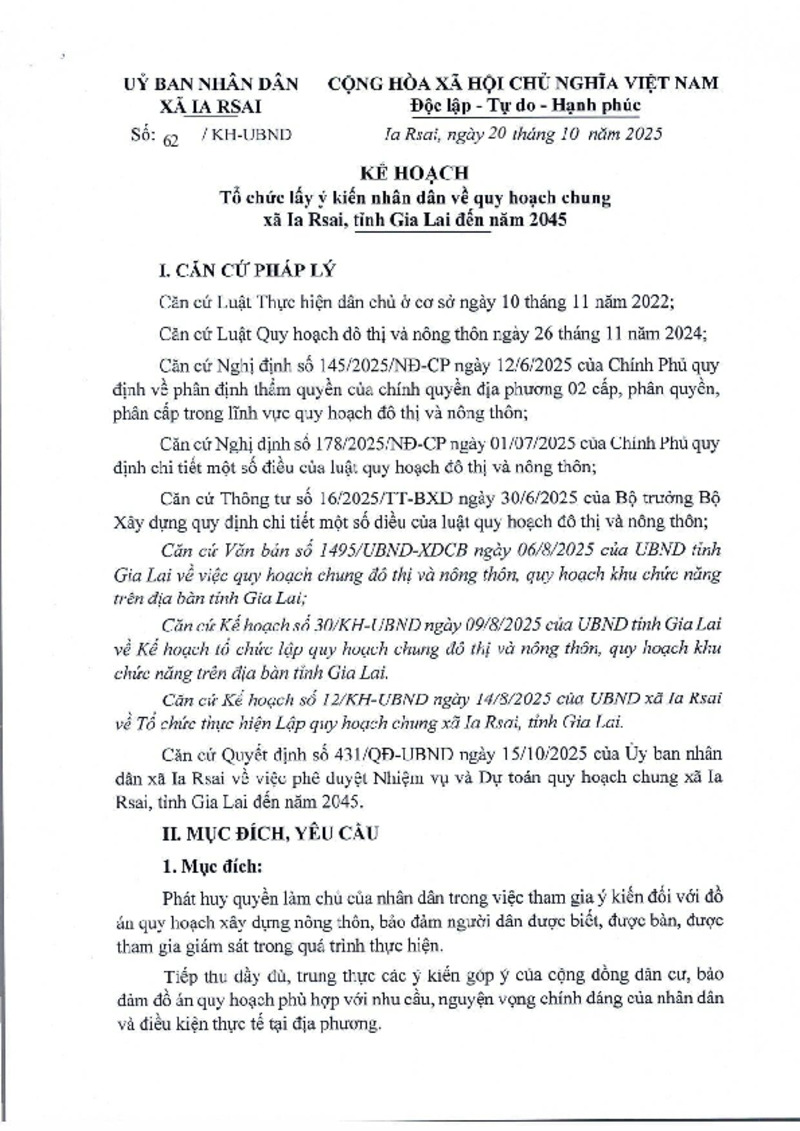 | Tiêu đề văn bản | tổ chức lấy ý kiến nhân dân về quy hoạch chung của xã Ia Rsai đến năm 2045 | ||